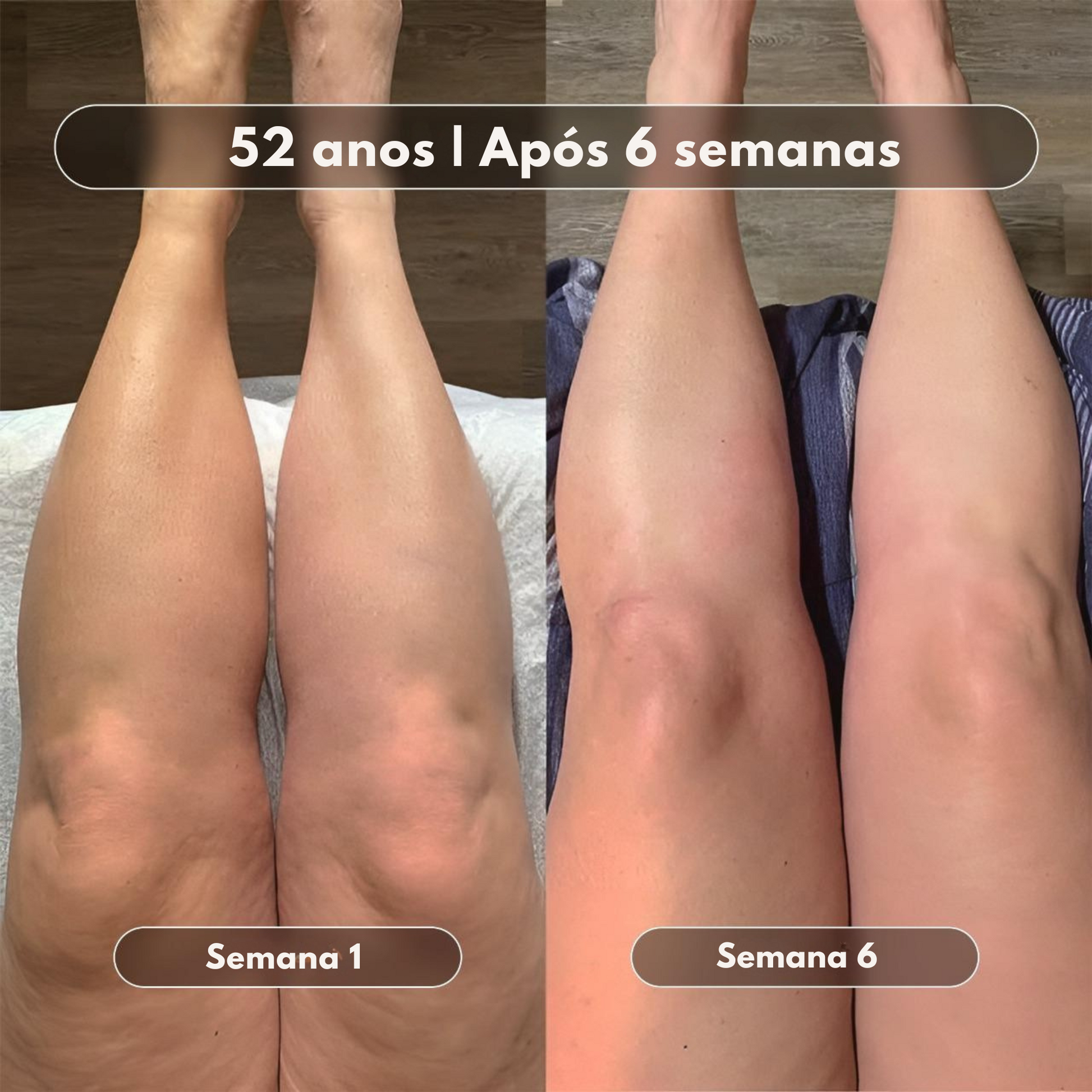 Colagénio + células estaminais. Textura sedosa e absorção rápida. Pele mais lisa e firme nas coxas, glúteos, barriga e braços.